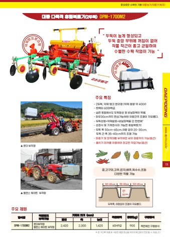 %uc57d%uc81c%ud0f1%ud06c %ubd84%ub9ac%ud615- 2%ub450%ub451, %uc57d%uc81c %ud0f1%ud06c %ubd84%ub9ac%ud615 (%uc57d%uc81c %uc6a9%ub7c9 %uc57d 400%u2113)- %ud2b8%ub799%ud130 60%ub9c8%ub825%uae09.- %uc2b5%ud55c %ud1a0%uc9c8%uc5d0%uc11c%ub3c4 %ub450%ub451%ud615%uc131 %ubc0f %ube44%ub2d0%ud53c%ubcf5%uc774 %ud0c1%uc6d4.- %uc88c%uc6b030cm%uae4c%uc9c0 %ud3b8%uc2ec%uac00%ub2a5%ud558%uc5ec %uc774%ub791%uac04%uaca9 %uc870%uc808%uc774 %uc790%uc720%ub86d%ub2e4.- %ub450%ub451%uc131%ud615+%uc57d%uc81c%uc0b4%ud3ec+%ube44%ub2d0%ud53c%ubcf5%uc744 %ub2e8 %ud55c%ubc88%uc5d0\- %uc190%uc815%uc2dd %ubc0f %uae30%uacc4%uc815%uc2dd%uc774 %uac00%ub2a5%ud55c %ud734%ub9bd%ubcf5%ud1a0%uae30!- %ub450%ub451 %ud3ed 50cm~65cm,%uc774%ub791 %uae4a%uc774 20~30cm, %ub450%ub451 %uac04 %ud3ed 35~40cm%uae4c%uc9c0 %uc870%uc808 %uac00%ub2a5- %ud30c%uc885%uae30 %ubc0f %uc7a5%ucc29%ub300%ub97c %ubd80%ucc29%ud558%uba74 %uc528%uc557 %ud30c%uc885%uae4c%uc9c0 %uac00%ub2a5(%uc635%uc158)- %uc904%uce58%uae30 %ub9c8%ucee4%ub97c %uc774%uc6a9%ud558%uc5ec %uc815%uad50%ud55c %uc791%uc5c5%uac00%ub2a5(%uc635%uc158)%ud48d%uc694%ub85c%uc6b4 %uc218%ud655%uc758 %uae30%uc068 %ub300%ud48d%ub18d%uae30/%ub300%ud48d%uae30%uacc4(%uc8fc)%ub300%ud48d %ub2e4%ubaa9%uc801 %ud734%ub9bd%ubcf5%ud1a0%uae30(2%ub450%ub451) DPM-1700M2 %u203b %ubcf8 %uce74%ub2e4%ub85d %uc81c%ud488 %ubc0f %uc0ac%uc591%uc740 %ud488%uc9c8 %ud5a5%uc0c1%uc744 %uc704%ud558%uc5ec %uc608%uace0%uc5c6%uc774 %ubcc0%uacbd %ub420 %uc218 %uc788%uc2b5%ub2c8%ub2e4.%ud615%uc2dd%uba85 %uc57d%uc81c%ud0f1%ud06c%ubd80%ucc29%uad6c%ubd84%uae30%uccb4%uc758 %ud06c%uae30 (mm) %uc801%uc6a9%ub9c8%ub825 %uc911%ub7c9(kg) %uad6c%ub3d9%ubc29%uc2dd%uae38%uc774 %ud3ed %ub192%uc774%uce21%uba74%uccb4%uc778 %uad6c%ub3d9%ubc29%uc2dd%uc8fc%uc694 %uc81c%uc6d0DPM-1700M2 2,420 2,300 1,420 60HP%uae09 90050~65cm2030cm~35~40cm 50~65cm%ub450%ub451%ud3ed, %uc774%ub791%uae4a%uc774 %uc870%uc808%uc774 %uc790%uc720%ub86d%ub2e4.%uc8fc%uc694 %ud2b9%uc9d5www.dp-mc.co.kr%u25b2 %ub85c%ub354 %ubd80%ucc29%ud615%u25b2 %ubc38%ub7f0%uc2a4 %uc6e8%uc774%ud2b8 %ubd80%ucc29%ud615%ub85c%ub354%ubd80%ucc29%ud615 %ubca8%ub7f0%uc2a4 %uc6e8%uc774%ud2b8 %ubd80%ucc29%ud615 %ucf69,%uace0%uad6c%ub9c8,%uace0%ucd94,%uac10%uc790,%ubc30%ucd94,%uc625%uc218%uc218,%uc870%ub4f1 %ub2e4%uc591%ud55c %uc791%ubb3c %uac00%ub2a5%uc57d%uc7ac%uc6a9%ub7c9400%u2113%u201c %ub450%ub451%uc774 %ub192%uac8c %ud615%uc131%ub418%uace0 %ub450%ub451 %uc911%uc559 %ubd80%uc704%uc5d0 %uaebc%uc9d0%uc774 %uc5c6%uc5b4 %uc791%ubb3c %ucc29%uadfc%uc774 %uc88b%uace0 %uade0%uc77c%ud558%uc5ec %uc218%uc6d4%ud55c %uc218%ud655 %uc791%uc5c5%uc774 %uac00%ub2a5%u201c13