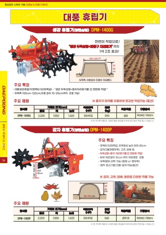 %ud48d%uc694%ub85c%uc6b4 %uc218%ud655%uc758 %uae30%uc068 %ub300%ud48d%ub18d%uae30/%ub300%ud48d%uae30%uacc4(%uc8fc)%ud55c%ubc88%uc758 %uc791%uc5c5%uc73c%ub85c!%u201c%uc0dd%uac15 %ub450%ub451%uc131%ud615+%ud30c%uc885%uad6c %uc790%ub9ac%ud30c%uae30%u201d %uae4c%uc9c0 %uc0dd%uac15 %ud734%ub9bd%uae30(%uc591%ud3b8%uc2ec%ud615) DPM-1400G %u203b %ubcf8 %uce74%ub2e4%ub85d %uc81c%ud488 %ubc0f %uc0ac%uc591%uc740 %ud488%uc9c8 %ud5a5%uc0c1%uc744 %uc704%ud558%uc5ec %uc608%uace0%uc5c6%uc774 %ubcc0%uacbd %ub420 %uc218 %uc788%uc2b5%ub2c8%ub2e4.%ud615%uc2dd%uba85 %uae30%uccb4%uc758 %ud06c%uae30(mm) %uc801%uc6a9%ub9c8%ub825(HP)%uc911%ub7c9(kg) %uc801%uc6a9%uc791%ubb3c %uad6c%ub3d9%ubc29%uc2dd %uae38%uc774 %ud3ed %ub192%uc774DPM-1400G 2,200 1,550 1,420 50HP%uae09 590 %uc0dd%uac15 %uce21%uba74%uccb4%uc778 %uad6c%ub3d9%ubc29%uc2dd%uc8fc%uc694 %uc81c%uc6d010~ 30cm100~120 cm%ub450%ub451%ud3ed, %uc774%ub791%uae4a%uc774 %uc870%uc808%uc774 %uc790%uc720%ub86d%ub2e4.- %ub300%ud48d%uc0dd%uac15%ud734%ub9bd%uae30(%ud2b8%ub799%ud130 50%ub9c8%ub825%uae09) - \- %ub450%ub451%ud3ed 100cm~120cm,%uc774%ub791 %uae4a%uc774 10~30cm%uae4c%uc9c0 %uc870%uc808 %uac00%ub2a5!%uc8fc%uc694 %ud2b9%uc9d5%uac10%uc790 %ud734%ub9bd%uae30(%uc591%ud3b8%uc2ec%ud615) DPM-1400P%u203b %ubcf8 %uce74%ub2e4%ub85d %uc81c%ud488 %ubc0f %uc0ac%uc591%uc740 %ud488%uc9c8 %ud5a5%uc0c1%uc744 %uc704%ud558%uc5ec %uc608%uace0%uc5c6%uc774 %ubcc0%uacbd %ub420 %uc218 %uc788%uc2b5%ub2c8%ub2e4.%uc8fc%uc694 %uc81c%uc6d0%ud615%uc2dd%uba85 %uae30%uccb4%uc758 %ud06c%uae30(mm) %uc801%uc6a9%ub9c8%ub825(HP)%uc911%ub7c9(kg) %uc801%uc6a9%uc791%ubb3c %uad6c%ub3d9%ubc29%uc2dd %uae38%uc774 %ud3ed %ub192%uc774DPM-1400P 2,200 1,550 1,420 50HP%uae09 565 %uac10%uc790 %uc678 %uce21%uba74%uccb4%uc778 %uad6c%ub3d9%ubc29%uc2dd80~90 cm20~ 40cm%ub450%ub451%ud615%uc131%ub192%uc774 40cm%ucd5c%ub300%uc8fc%uc694 %ud2b9%uc9d5%uc77c%ub418%ub294%uc791%uc5c5%uae30%ub294%ub2e4%ub974%ub2e4%u203b %uac10%uc790, %uace0%ucd94, %ub2f4%ubc30, %ud1a0%ub780%ub4f1 %ub2e4%uc591%ud55c %uc791%ubb3c %uac00%ub2a5%u203b %uc904%uce58%uae30 %ub9c8%ucee4%ub97c %uc774%uc6a9%ud558%uc5ec %uc815%uad50%ud55c %uc791%uc5c5%uac00%ub2a5 (%uc635%uc158)1%uc11d 2%uc870 %ud6a8%uacfc!- %ud2b8%ub799%ud130 50%ub9c8%ub825%uae09, %ub450%ub451%ud615%uc131 %ub192%uc774 %ucd5c%ub300 40cm - %uac10%uc790(2%uc904%ud30c%uc885%ub450%ub451), %uace0%ucd94, %ub2f4%ubc30 %ub4f1.- %ub450%ub451%uc131%ud615+%uc885%uc790 %uc790%ub9ac%ud30c%uae30%ub97c %ub2e8 %ud55c%ubc88%uc5d0 %uc791%uc5c5! - %uc528%uc557 %uc790%ub9ac%uae4a%uc774 10cm %uae4c%uc9c0 %uc790%uc720%ub85c%uc6b4 %uc870%uc808- %ub450%ub451%ud615%ud0dc %uc120%ud0dd %uac00%ub2a5 (%uc6d0%ud615 or %ud3c9%ub450%ub451)- %uc810%uc801 %ud638%uc2a4(1%uc5f4/2%uc5f4) %uc124%uce58%uac00%ub2a5(%uc635%uc158)16