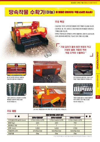 %ud48d%uc694%ub85c%uc6b4 %uc218%ud655%uc758 %uae30%uc068 %ub300%ud48d%ub18d%uae30/%ub300%ud48d%uae30%uacc4(%uc8fc)www.dp-mc.co.kr%uc8fc%uc694 %uc81c%uc6d0%ud759 %ud138%ub9bc%uc740 %uc591%ud638%ud558%uac8c! %uc791%ubb3c %uc190%uc0c1%uc740 %ucd5c%uc18c%ud654!%ud759 %ube44%uc0b0 %ubc29%uc9c0%ud310 %ubd80%ucc29%uc73c%ub85c %ub204%ub984%ube44%ub2d0 %uc704%ub85c %ud759 %ube44%uc0b0%uc744 %ubc29%uc9c0 %ud558%uc600%uc2b5%ub2c8%ub2e4. 7%uc5f4%uc758 %uace0%ubb34%ub7ec%uadf8%ub294 %uace0%ubb34%uacbd%ub3c4%uac00 3%ub2e8%uacc4%ub85c %ud759%ud138%ub9bc%uc740 %uc591%ud638%ud558%uac8c %uc791%ubb3c %uc190%uc0c1%uc744%ucd5c%uc18c%ud654 %ud558%uc600%uc2b5%ub2c8%ub2e4. %ub450%ub451 %uc911%uc559%ubd80%uc5d0 %ubc30%ud1a0%uc791%uc5c5 %uae30%ub2a5%uc774 %uc788%uc5b4 %uc791%ubb3c %uc218%uc9d1%uc744 %uc6d0%ud65c%ud558%uac8c %ud558%uc600%uc2b5%ub2c8%ub2e4. %uc791%ubb3c%uc758 %ubc00%ub9bc%uc744 %uc904%uc774%uace0 %uc774%uc1a1%uc744 %uc6d0%ud560%ud558%uac8c%ud558%uc5ec %uc815%uccb4%ub85c %uc778%ud55c %uc791%ubb3c %uc190%uc0c1%uc744 %ucd5c%uc18c%ud654 %ud558%uc600%uc2b5%ub2c8%ub2e4.%uae30%uc5b4 BOX %uc801%uc6a9%uc744 %ud1b5%ud574 %ubd80%ud558 %ucd95%uc5d0 %ub300%ud55c %ub0b4%uad6c%uc131%uc744 %uc99d%ub300 %uc2dc%ucf30%uc2b5%ub2c8%ub2e4. %u203b %ubcf8 %uce74%ub2e4%ub85d %uc81c%ud488 %ubc0f %uc0ac%uc591%uc740 %ud488%uc9c8 %ud5a5%uc0c1%uc744 %uc704%ud558%uc5ec %uc608%uace0%uc5c6%uc774 %ubcc0%uacbd %ub420 %uc218 %uc788%uc2b5%ub2c8%ub2e4.%uad6c %ubd84%ub300%ud48d %ub545%uc18d%uc791%ubb3c %uc218%ud655%uae30 %ud615%uc2dd%ube44 %uace0DPM-1250G7 DPM-1400G7 DPM-1700G7%ud06c%uae30(%uae38%uc774%u00d7%ud3ed%u00d7%ub192%uc774) (mm) 1,710%u00d71,510%u00d71,075 1,710%u00d71,660%u00d71,075 1,710%u00d71,960%u00d71,075%uc911%ub7c9 (kg) 620 650 730%ub85c%ud0c0%ucd95%uc218 (%uac1c) 7 7 7%uacbd%ud3ed (mm) 1,250 1,400 1,700%uc801%uc6a9%ub9c8%ub825 (HP) 47HP%uae09 %uc774%uc0c1 50HP%uae09 %uc774%uc0c1 50HP%uae09 %uc774%uc0c1%uc801%uc6a9%uc791%ubb3c %ub9c8%ub298 %ub9c8%ub298 %ub9c8%ub298- %uc774%uc1a1%uc9c4%ub3d9 %uac00%uc774%ub4dc %ubd80%ucc29%uc73c%ub85c %ubc00%ub9bc%uc5d0 %uc758%ud55c %uc791%ubb3c%uc758 %uc190%uc0c1%uc744 %ucd5c%uc18c%ud654.- 3%ub2e8%uacc4(%uac15, %uc911, %uc57d) %uace0%ubb34%ub7ec%uadf8 %uacbd%ub3c4%uc801%uc6a9%uc73c%ub85c %ud759 %ud138%ub9bc%uc740 %uc591%ud638%ud558%uace0 %uc791%ubb3c%uc190%uc0c1%uc744 %ucd5c%uc18c%ud654.- %ud2b8%ub799%ud130 %uc8fc%ud589%uc18d%ub3c4%uc640 %uad00%uacc4%uc5c6%uc774 %uc218%ud655%uc774 %uc6d0%ud65c%ud558%uba70, %uc9c4%ub3d9 %ubc0f %uc18c%uc74c %ucd5c%uc18c%ud654.- %ub450%ub451 %uc911%uc559%ubd80%uc5d0 %ubc30%ud1a0%uc791%uc5c5 %uae30%ub2a5%uc774 %uc788%uc5b4 %uc791%ubb3c %uc218%uc9d1 %uc6d0%ud65c.%uc8fc%uc694 %ud2b9%uc9d5%u201c %uae30%ub300 %uae38%uc774%uac00 %uc9e7%uc544 %ud68c%uc804 %ubc18%uacbd%uc774 %uc791%uace0 %uae30%ub300%uc758 %ucd9c%ub801 %uac70%ub9bc%uc774 %uc801%uc5b4 %uc791%uc5c5 %uc870%uc791%uc774 %uc218%uc6d4%ud558%ub2e4 %u201d27