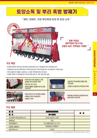 %uc57d%uc81c%uc6a9%ub7c980kg%uc8fc%uc694 %ud2b9%uc9d5- %ubc29%uc81c(%ubfcc%ub9ac%ud639%ubcd1 %ubc0f %ud1a0%uc591%uc18c%ub3c5)%uc791%uc5c5%uacfc %uc1c4%ud1a0%uc791%uc5c5%uc774 %ub3d9%uc2dc %uc791%uc5c5%ud568%uc5d0 %ub530%ub77c %uc778%ub825%uc808%uac10 %ud6a8%uacfc.- %uc57d%uc81c%uc0b4%ud3ec%uc640 %ub3d9%uc2dc%uc5d0 %uc1c4%ud1a0%uc791%uc5c5%uc774 %uc774%ub8e8%uc5b4%uc9d0%uc5d0 %ub530%ub77c %uc57d%uc81c %ud718%ub0a0%ub9bc %ubc29%uc9c0 %ubc0f %ubc29%uc81c%ud6a8%uacfc %uadf9%ub300%ud654 %uc2e4%ud604.- %uc57d%uc81c %uc720%ucd9c%uacfc%uc815 %ubd80%ud488%uc744 %uc2a4%ud14c%uc778%ub808%uc2a4 %uc18c%uc7ac%ub85c %uc81c%uc791%ud568%uc73c%ub85c%uc368 %ubd80%uc2dd%ubc29%uc9c0.- %uc57d%uc81c%ub7c9 %uc870%uc808%uc774 %uc790%uc720%ub85c%uc6c0%uc73c%ub85c %uc778%ud558%uc5ec %uc815%ub7c9 %uc0b4%ud3ec %ubc0f %uace0%ub978 %uc0b4%ud3ec%uc791%uc5c5 %uc2e4%ud604.%ud48d%uc694%ub85c%uc6b4 %uc218%ud655%uc758 %uae30%uc068 %ub300%ud48d%ub18d%uae30/%ub300%ud48d%uae30%uacc4(%uc8fc)www.dp-mc.co.kr%u201c %ubc30%ucd94, %uc591%ubc30%ucd94, %uac13%ub4f1 %ubfcc%ub9ac%ud639%ubcd1 %ubc29%uc81c %ubc0f %ud1a0%uc591 %uc18c%ub3c5 %u201d%u201c %ubc29%uc81c %uc791%uc5c5%uacfc %uc1c4%ud1a0%uc791%uc5c5%uc774 %ub3d9%uc2dc%uac00%ub2a5, %uade0%uc77c%ud55c %uc0b4%ud3ec, %uc778%ub825%uc808%uac10 %uadf9%ub300%ud654 %u201d- %uc790%uc5f0%ub099%ud558%uc2dd%uc73c%ub85c %uade0%uc77c%ud558%uace0 %uace0%ub978 %uc0b4%ud3ec%ub97c %uc704%ud55c %uc0b4%ud3ec%uc7a5%uce58 %ucc44%ud0dd- %uc57d%uc81c %uc720%ub3c4 %ud638%uc2a4 %ubd80%ucc29- %uc57d%uc81c%uc758 %uc6d0%ud65c%ud55c %ud750%ub984%uc744 %uc704%ud55c %ubbf8%ub044%ub7fc %uce74%ubc14 %ubd80%ucc29- %uac04%ud3b8%ud55c DC%ubaa8%ud130(12V)%uad6c%ub3d9 %ubc29%uc2dd %ucc44%ud0dd- %uc0b4%ud3ec%uc7a5%uce58 %ud2b9%uc218%uc124%uacc4%ub85c %uade0%uc77c%ud55c %uc0b4%ud3ec %uc791%uc5c5 %uc2e4%ud604- %uc791%uc5c5%uc758 %ud3b8%ub9ac%uc131 %ubc0f %uc790%uc720%ub85c%uc6b4 %uc0b4%ud3ec%ub7c9%uc870%uc808%uc744 %uc704%ud558%uc5ec %uc720%uc555%uc2e4%ub9b0%ub354 %uc870%uc808%ubc29%uc2dd %ucc44%ud0dd- %uc57d%uc81c%ub9c9%ud798%uacfc %ud761%ucc29%ud604%uc0c1 %ubc29%uc9c0%ub97c %uc704%ud558%uc5ec %uc9c4%ub3d9 %ucea0 %ubc29%uc2dd%uc73c%ub85c %uc81c%uc791%uc8fc%uc694 %uc81c%uc6d0%u203b %ubcf8 %uce74%ub2e4%ub85d %uc81c%ud488 %ubc0f %uc0ac%uc591%uc740 %ud488%uc9c8 %ud5a5%uc0c1%uc744 %uc704%ud558%uc5ec %uc608%uace0%uc5c6%uc774 %ubcc0%uacbd %ub420 %uc218 %uc788%uc2b5%ub2c8%ub2e4.%ud488 %uba85 %ub85c%ud0c0%ubca0%uc774%ud130(%uc77c%uccb4%ud615)%ube44 %uace0%ud615 %uc2dd DP-230S%ud06c%uae30(%uae38%uc774%u00d7%ud3ed%u00d7%ub192%uc774)(mm) 1,010%u00d72,520%u00d71,370%uc911%ub7c9(kg) 720%ub3d9%ub825%uc804%ub2ec%ubc29%uc2dd %uc720%ub2c8%ubc84%uc15c%uc8e0%uc778%ud2b8, DC 12V%uc0b4%ud3ec%ub7c9 %uc870%uc808%ubc29%uc2dd %uc720%uc555%uc2e4%ub9b0%ub354 %uc870%uc808%ubc29%uc2dd%uc0b4%ud3ec %ud3ed(mm) 2,30031