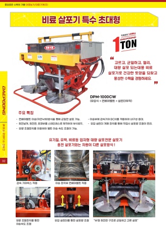 %ud48d%uc694%ub85c%uc6b4 %uc218%ud655%uc758 %uae30%uc068 %ub300%ud48d%ub18d%uae30/%ub300%ud48d%uae30%uacc4(%uc8fc)%uc8fc%uc694 %ud2b9%uc9d5- %ucee8%ubca0%uc5b4%ubca8%ud2b8 %uc774%uc1a1(%uc790%uc5f0%ub099%ud558)%ubc29%uc2dd%uc744 %ud1b5%ud574 %uade0%uc77c%ud55c %uc0b4%ud3ec %uac00%ub2a5. - %uc774%uc1a1%ubd80%uc5d0 %uac10%uc18d%uae30%uc5b4 BOX%ub97c %uc801%uc6a9%ud558%uc5ec %ub0b4%uad6c%uc131 %uc99d%ub300.- %ud68c%uc804%ub0a0%uac1c, %ud68c%uc804%ud310, %ud638%ud37c%ubd80%ub97c %uc2a4%ud14c%uc778%ub808%uc2a4%ub85c %uc81c%uc791%ud558%uc5ec %ubd80%uc2dd%ubc29%uc9c0. - %uc720%uc555 %uc2e4%ub9b0%ub354 %uac1c%ud3d0 %uc7a5%uce58%ub97c %ud1b5%ud574 %uc791%uc5c5%uc2dc %uc0b4%ud3ec%ub7c9 %uc870%uc808%uc774 %ud3b8%ub9ac. - %uc720%ub7c9 %uc870%uc808%uc7a5%uce58%ub97c %uc774%uc6a9%ud558%uc5ec %ubca8%ud2b8 %uc774%uc1a1 %uc18d%ub3c4 %uc870%uc808%uc774 %uac00%ub2a5.DPM-1000CW(%uc720%uc555%uc2dd + %ucee8%ubca0%uc5b4%ubca8%ud2b8 + %uc2e4%ub9b0%ub354%ubd80%ucc29)%uc77c%ub418%ub294%uc791%uc5c5%uae30%ub294%ub2e4%ub974%ub2e4%uc720%uae30%uc9c8, %uc720%ubc15, %ube44%ub8cc%ub4f1 %uc785%uc790%ud615 %ub300%ub7c9 %uc0b4%ud3ec%uc804%ubb38 %uc0b4%ud3ec%uae30 %uc885%uc804 %uc0b4%ud3ec%uae30%uc640%ub294 %ucc28%uc6d0%uc774 %ub2e4%ub978 %uc0b4%ud3ec%ubc29%uc2dd !%uace0%ub974%uace0, %uade0%uc77c%ud558%uace0, %uba40%ub9ac, %ub300%ub7c9 %uc0b4%ud3ec %ub418%ub294%ub300%ud48d %ube44%ub8cc%uc0b4%ud3ec%uae30%ub85c %uac74%uac15%ud55c %ud1a0%uc591%uc744 %ub418%ucc3e%uace0 %ud48d%uc131%ud55c %uc218%ud655%uc744 %uacbd%ud5d8%ud558%uc138%uc694. %uac10%uc18d %uae30%uc5b4%ubc15%uc2a4 %uc801%uc6a9 %uc774%uc1a1 %uc7a5%uce58%ubd80 %ucee8%ubca0%uc5b4%ubca8%ud2b8 %uc801%uc6a9%uc720%ub7c9 %uc870%uc808%uc7a5%uce58%ub97c %ud1b5%ud55c %uc720%uc555 %uc2e4%ub9b0%ub354%ub97c %ud1b5%ud55c %uc0b4%ud3ec%ub7c9 %uc870%uc808 \%uc774%uc1a1%uc18d%ub3c4 %uc870%uc80832
